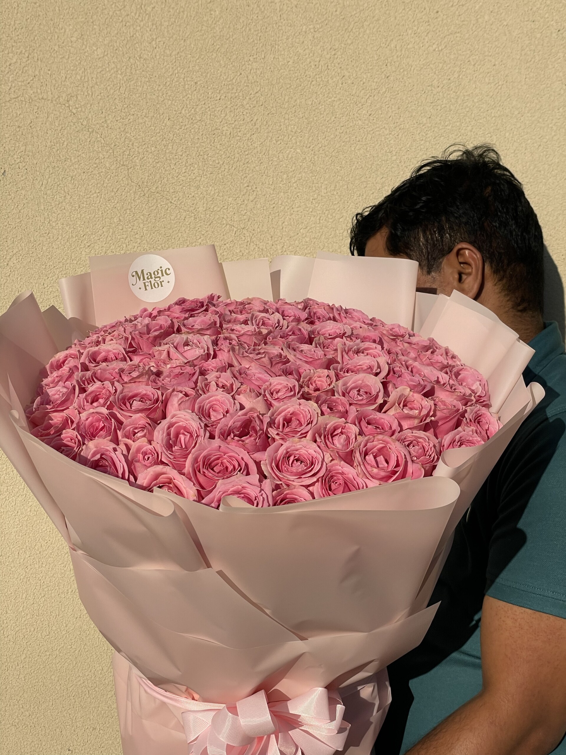 A bouquet of 131 Wham pink roses, wrapped in soft light pink paper and designed to express pure elegance and affection. Whether you’re looking for a beautiful gift for your mom, a sweet surprise for a friend, or a romantic bouquet for someone special, this arrangement is perfect for anyone searching for premium pink roses in Dubai or a luxury flower gift that truly stands out. 🤍✨